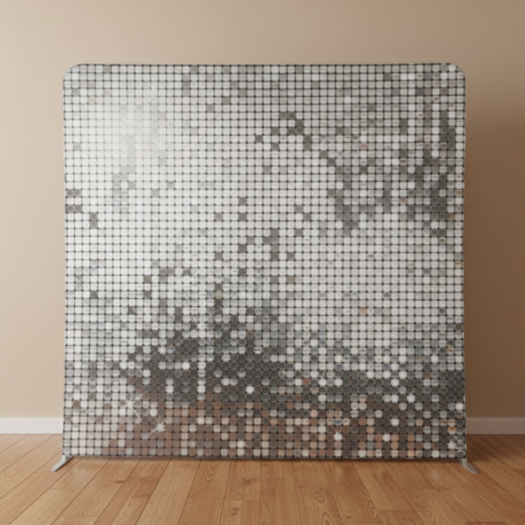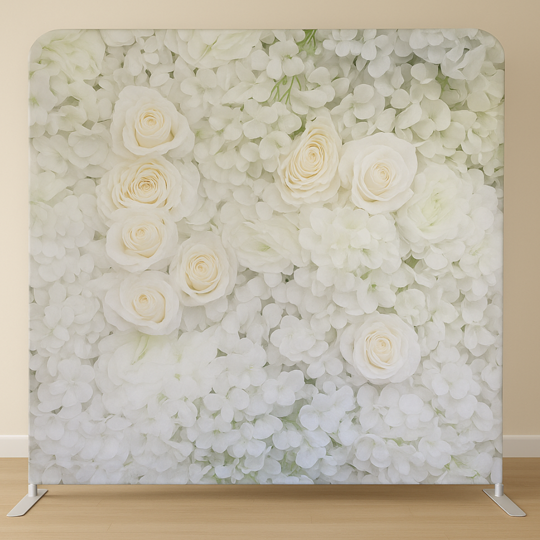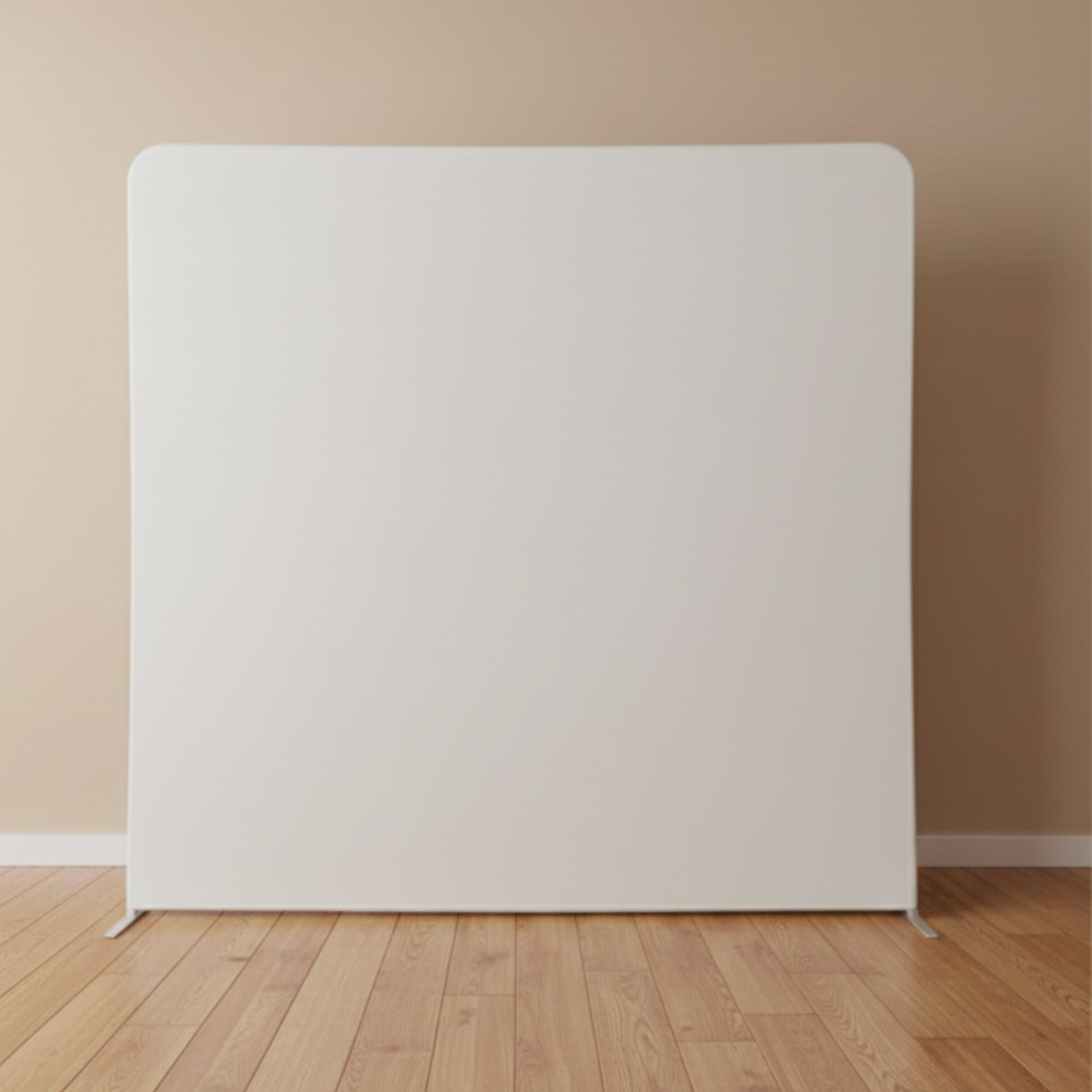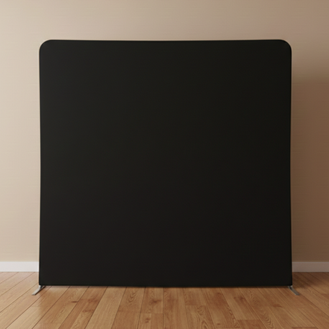 Our backdrops create the perfect setting for your photos, giving your event a polished and stylish look. Each backdrop is displayed on a sturdy metal frame with a seamless, pillowcase-style cover that slides over to create a smooth, professional finish.